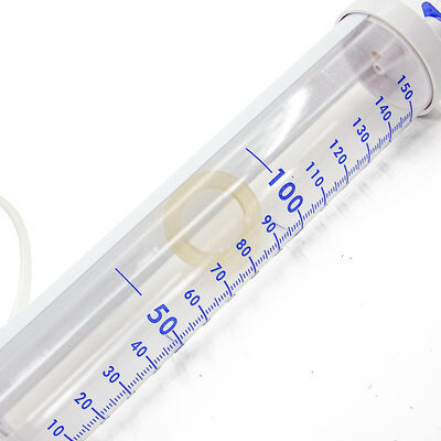 A: 이 뷰렛의 용량은 100mL로, 더 큰 부피의 적정 및 화학 분주 작업에 적합합니다.